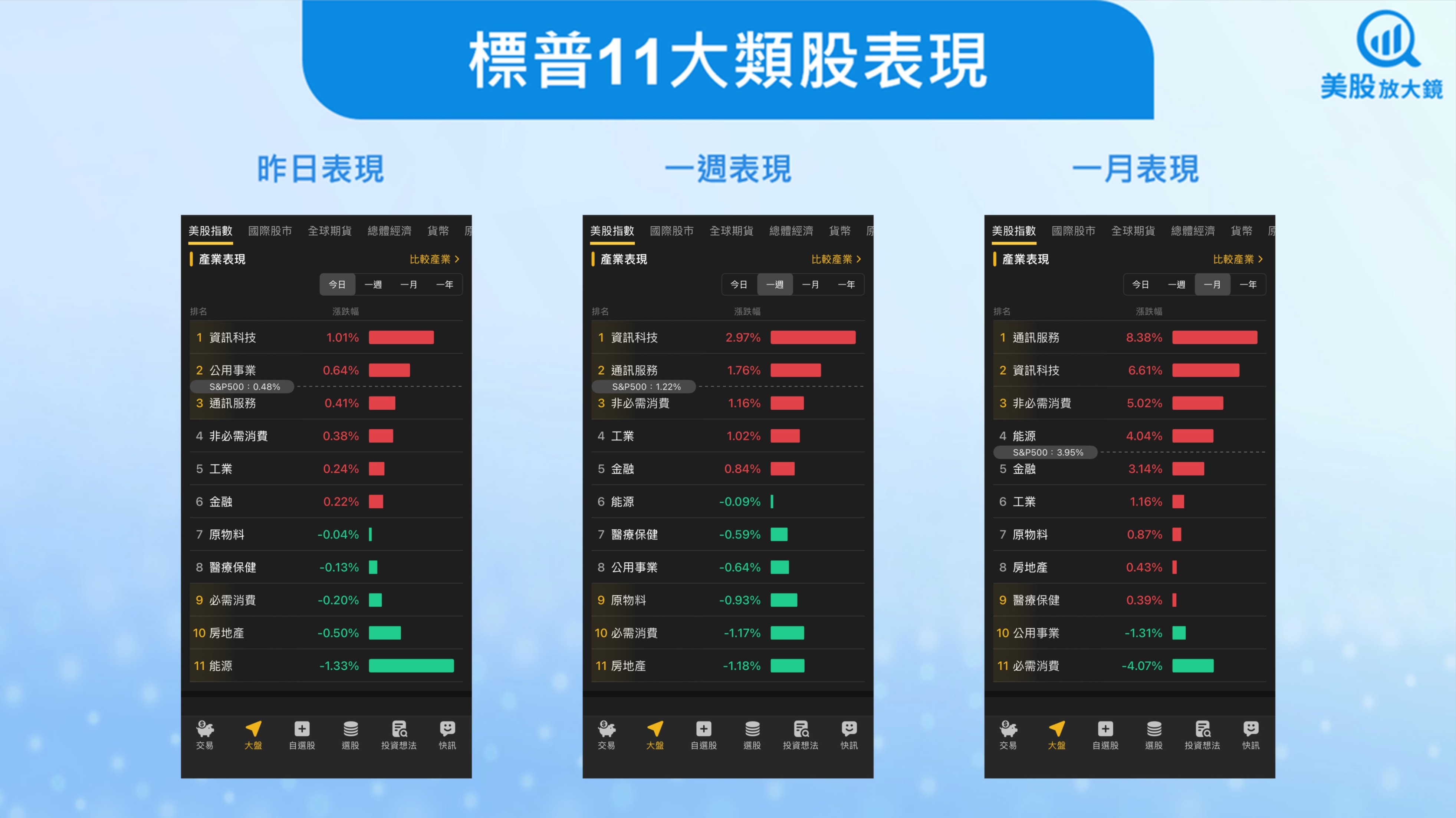 反觀能源股受油價持續下跌拖累,雪佛龍及埃克森美孚均走跌;必需型消費品因資金流出表現相對較弱,沃爾瑪(WMT)跌 1.2%、Dollar General(DG)走弱 4.5%、Dollar Tree(DLTR)摔 3.1%。