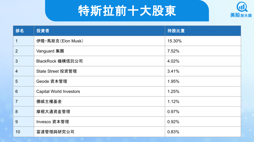 在這樣的背景下,其他未表態的機構投資人將成為票數關鍵,例如 Vanguard(占比7.52%)、BlackRock(占比4.02%)等持股比重高的被動資金若選擇棄權或投下反對票,可能將整體風向拉向不利於馬斯克的一方。