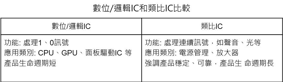 類比IC處理的是聲音、光、電、溫度這類連續訊號,強調產品的可靠及穩定,故類比晶片廠商相對不需追逐先進的製程,產品生命週期逾10年。類比晶片的特性也展現亞德諾穩定的獲利能力上。