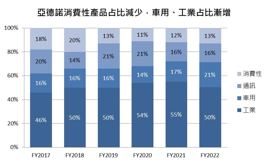 FY23Q1工業、車用部門神助攻,亞德諾營收、稀釋EPS續創高峰