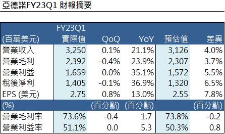 亞德諾財測優於預期,上調亞德諾FY23Q2/FY2023財務表現預估